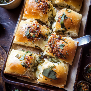 Pickle-Garlic Butter Cuban Inspired Pull-Apart Sliders are an inviting dish that combines tangy, buttery flavors with cheesy goodness. They are perfect for gatherings and easy to customize according to your taste. Experiment with different cheeses or additional toppings like jalapeños for added flair!